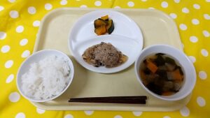 種取りをしてくれたかぼちゃは翌日の給食でかぼちゃの煮物に変身して登場!
